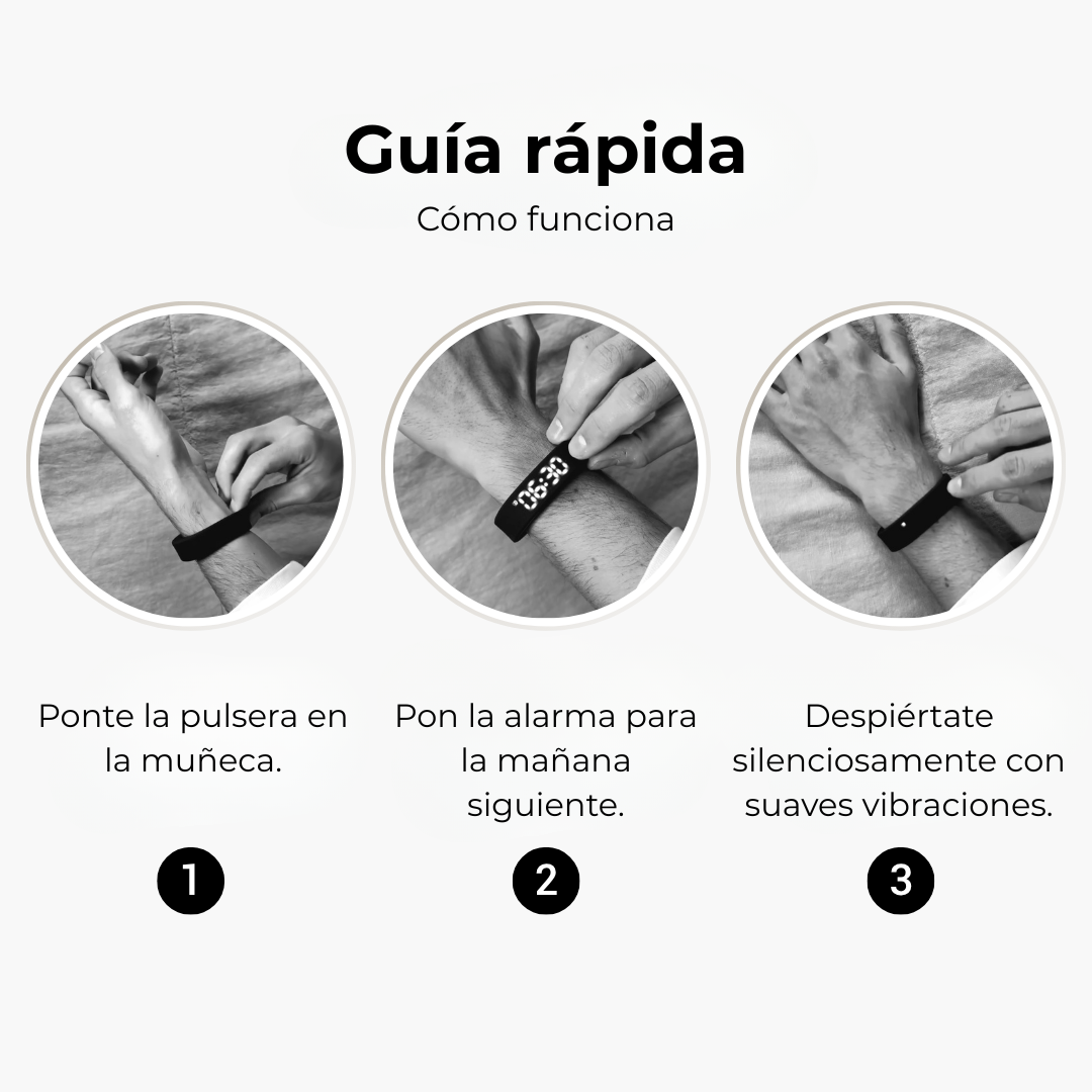 SERENO Wake-Up Band transforma tus mañanas con vibraciones silenciosas y efectivas, despiertas descansado, con mejor humor y listo para empezar el día, mientras tu pareja sigue durmiendo sin interrupciones.